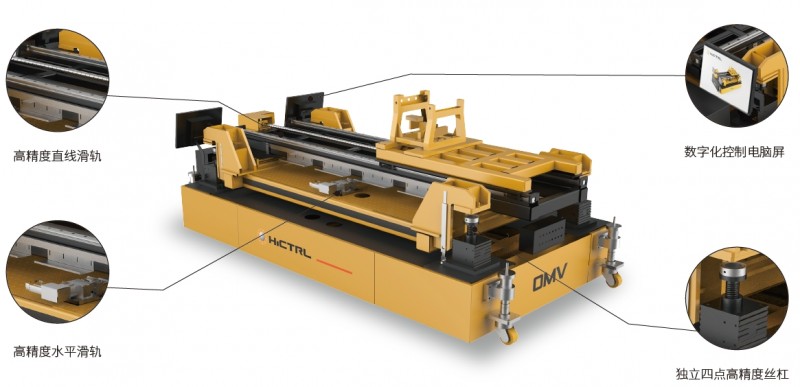 OMV飛機(jī)引擎安裝設(shè)備利用麥克納姆輪實(shí)現(xiàn)零回轉(zhuǎn)半徑、側(cè)移、全方位無死角任意漂移,具有獨(dú)立四點(diǎn)舉升裝置,結(jié)合自助導(dǎo)航、激光二次定位、導(dǎo)軌精密調(diào)節(jié)、控制發(fā)動(dòng)機(jī)的移動(dòng)、視覺精密定位完成六自由度精密裝配。