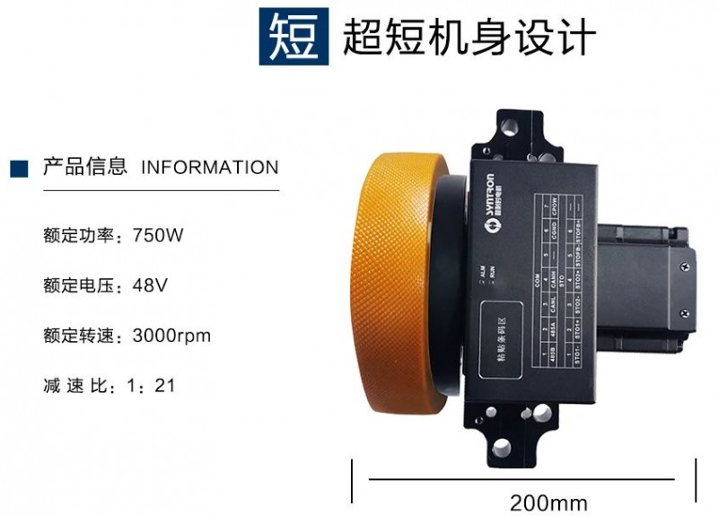 伺服輪驅模組是由輪邊減速器、電機、驅動器及包膠輪高度集成,四位一體集成化的設計結構更為緊湊,減少了零部件之間的外部連接線束,解放了設備空間,利于整車布置。