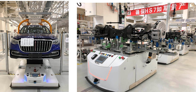 現(xiàn)階段,三豐正在研制新的智能組合分體承載式AGV,由前后各 1 臺承載式 AGV 組成,可分別承載5000kg 以上,有多車聯(lián)動、自動激光測距變距、載件轉(zhuǎn)彎功能、無軌自主導航技術、非接觸式供電、同步控制、精確定位、安全防護、自動上下料等功能,能實現(xiàn)大工件的無人化搬運作業(yè)和流水線生產(chǎn),取代傳統(tǒng)地板式、拖鏈式輸送,滿足商用車、工程機械、農(nóng)業(yè)機械等行業(yè)超長、超寬、超大機件的柔性搬運,及其快節(jié)拍、高效率的生產(chǎn)需求。