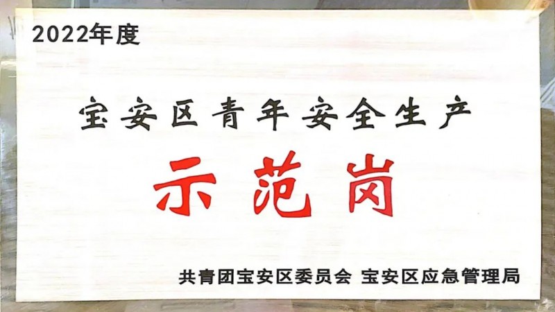 榮獲“寶安區(qū)青年生產(chǎn)示范崗”稱號(hào),踐行安全為先,品質(zhì)為王!
