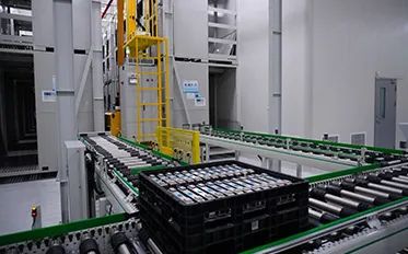 化成庫(kù)3臺(tái)堆垛機(jī)完成注液后的鋰電池存取;