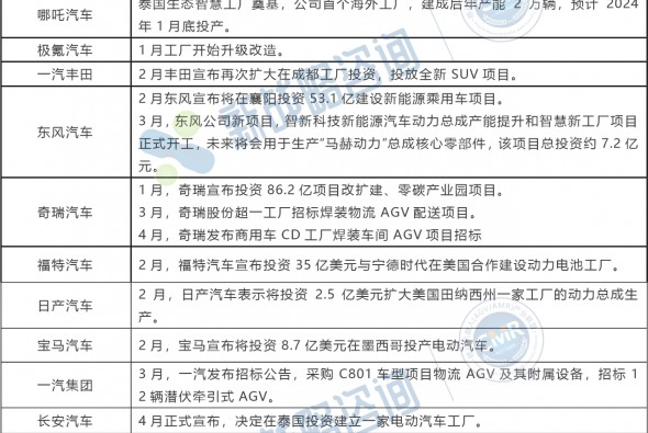 2023上半年汽車行業(yè)投資擴(kuò)產(chǎn)及AGV項(xiàng)目招標(biāo)情況分析