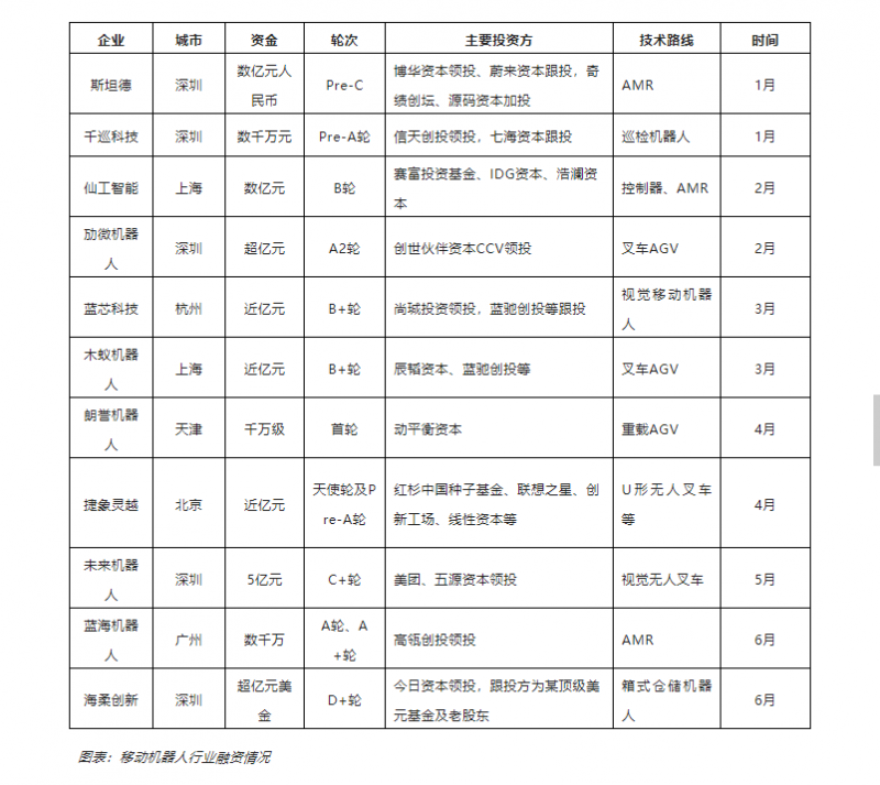 從資金投入來看,大部分企業(yè)融資金額都在億元級以上,其中,海柔創(chuàng)新與未來機器人兩家企業(yè)在上半年拿到了行業(yè)最多的融資。