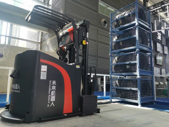 在該階段,大部分叉車AGV企業(yè)的重點發(fā)展方向是通過自動化取代人工叉車場景,所以更加注重技術(shù)上的賦能,在車體基礎(chǔ)結(jié)構(gòu)上沒有太多改造。其中,在突破技術(shù)場景的企業(yè)當中,以未來機器人為代表,對6層以上料框堆疊、9.4米高位存取以及2.0米窄通道存取等深水區(qū)場景實現(xiàn)攻克,進一步拓寬無人叉車的使用場景與應用方式。