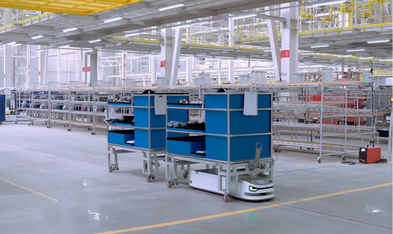 通過T1000潛伏牽引機(jī)器人及SPS上線機(jī)構(gòu),SPS料車全程無需人工干預(yù),可實(shí)現(xiàn)從配料區(qū)到生產(chǎn)線上線工位,再由生產(chǎn)線下線工位返回配料區(qū)的全流程無人化運(yùn)輸,從而緩解總裝車間的擁擠及混亂情況,精準(zhǔn)輸送各區(qū)域所需零配件,提高生產(chǎn)效率。