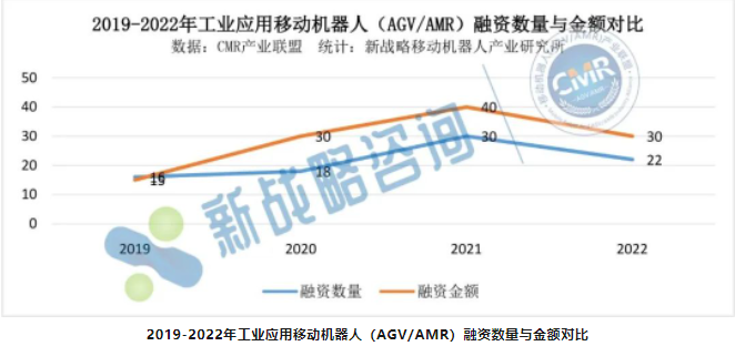 根據CMR聯盟數據統計,2022年工業應用移動機器人行業共發生22起融資事件,融資總額超過30億人民幣,無論是融資數量還是融資總金額方面,都較2021年有所下降。