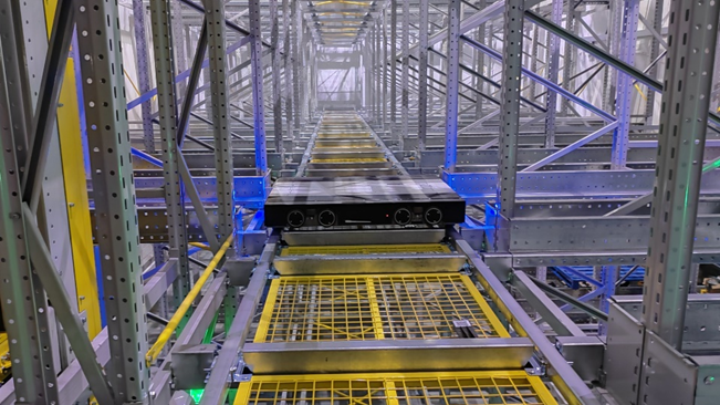 這個(gè)倉(cāng)庫(kù)是一個(gè)5℃冷藏庫(kù),主要存儲(chǔ)國(guó)內(nèi)某關(guān)鍵產(chǎn)業(yè)所需材料,要求恒溫恒濕。倉(cāng)庫(kù)高9米,為實(shí)現(xiàn)最大空間利用率,托盤(pán)四向穿梭車(chē)(簡(jiǎn)稱(chēng)“四向車(chē)”)方案是最優(yōu)選擇。其中,曠視在軟件調(diào)度算法上的優(yōu)勢(shì),以及與松下信息很好的配合度,讓松下工廠最終選中了曠視智能托盤(pán)四向車(chē)系統(tǒng)。