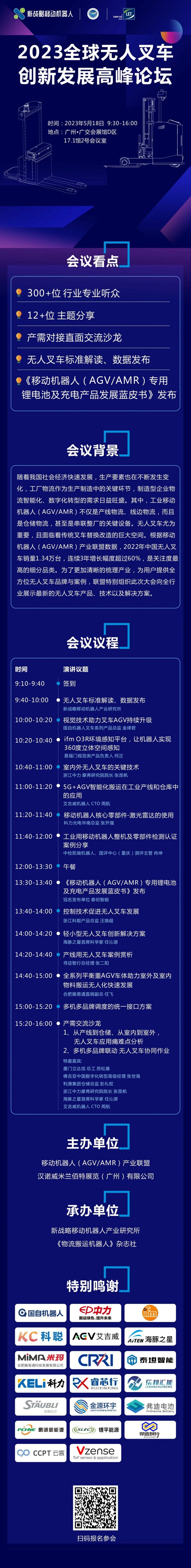 2023全球無人叉車創新發展高峰論壇”將在廣州重磅開啟,會議上,除14+主題演講外,還將重磅發布《移動機器人(AGV/AMR)專用鋰電池及充電產品發展藍皮書(2023版)》,敬請期待!