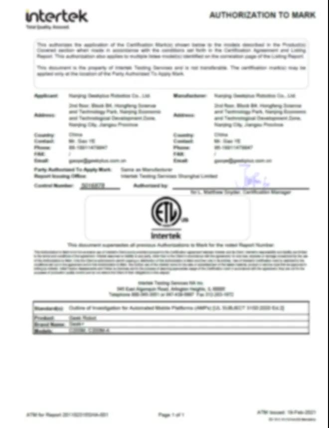 本次獲得ETL證書的RoboShuttle® C200M 貨箱到人機器人從機械安全、功能安全、電氣安全、電磁兼容等多個維度進行了安全設計,擁有極高標準的質量保證。