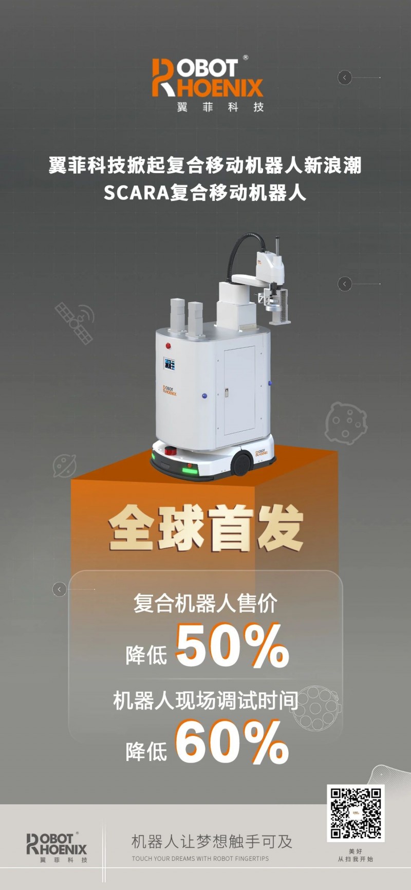 但從技術難度上來講,復合型機器人主要由 AMR、機械臂、視覺相機、末端執行器幾部分構成,業內常見的復合型機器人是集成商買來采購不同的產品,進行組裝和二次開發。這就導致了首先機器人的結構較為復雜,由于各個子單位的控制器不同,其內部通訊協議等完全不同,集成商的二次開發較為復雜,導致復合機器人的成本增高,讓眾多希望使用復合機器人的客戶望而卻步,目前,市面上最常見的是復合型機器是協作機器人+AMR,而翼菲科技首發的SCARA+AMR復合型機器人則解決了該類型機器人最大的痛點,其售價比協作復合機器人降低50%,設備交付時間降低60%。