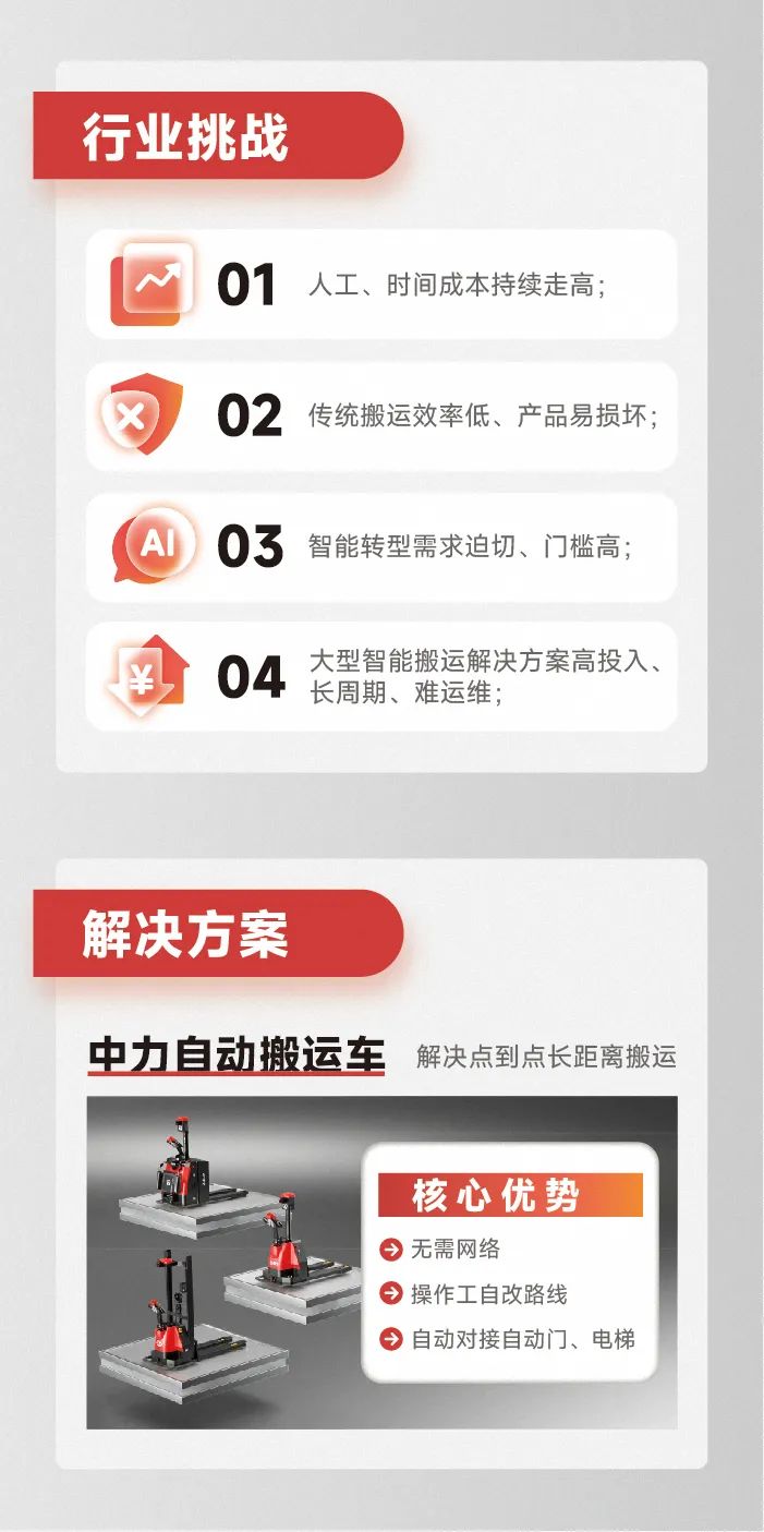 基于對市場的深度洞察,去年以來中力定義行業(yè)新概念——自動搬運車,專注解決點到點長距離無效搬運,破解用工難題。基于精準高效的自動配送,中力自動搬運車助力生產(chǎn)效率大幅提升!
