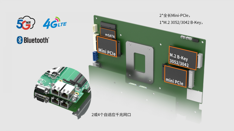 ² 1*M.2 3052/3042 B-Key,帶SIM卡槽,帶PCIeX1和USB2.0信號,支持5G NR模塊