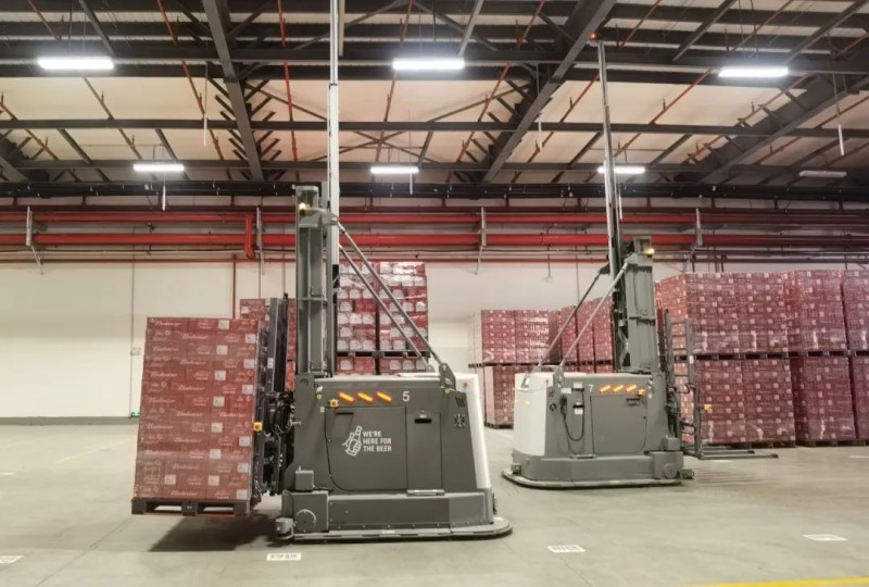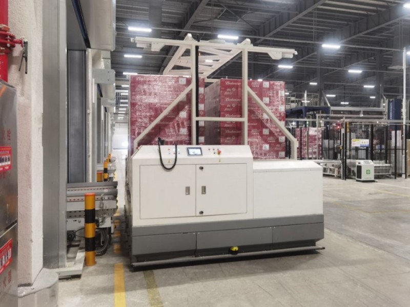 雙工位平衡重叉式AGV屬于國內(nèi)首創(chuàng),自動調(diào)節(jié)貨叉,可同時插取兩個或一個托盤,托盤載重可達3噸,配備3D視覺識別系統(tǒng),在托盤直接堆垛存儲場景中,可識別托盤準確位置,保證托盤精準搬運,實現(xiàn)成品啤酒堆碼垛安全可靠。其次,四工位萬向背輥式AGV共有4個托盤工位,可以獨立控制每個工位,可載重6噸。支持雙向卸貨,卸貨流程可根據(jù)客戶需要使用。運行速度快,載重大,定位精度高,同時具有良好的靈活性,可以實現(xiàn)原地旋轉(zhuǎn)。第三,AGV導航激光頭具備自動升降功能,實現(xiàn)不同凈空高度區(qū)域自動切換。此外AGV安裝貨物識別系統(tǒng),智能識別貨物規(guī)格、高度,保證貨物叉取準確率。現(xiàn)場AGV通訊采用環(huán)形網(wǎng)絡,連接不同AGV區(qū)域,13 臺AGV統(tǒng)一集群調(diào)度、分配任務,實時監(jiān)控AGV運行狀態(tài)。