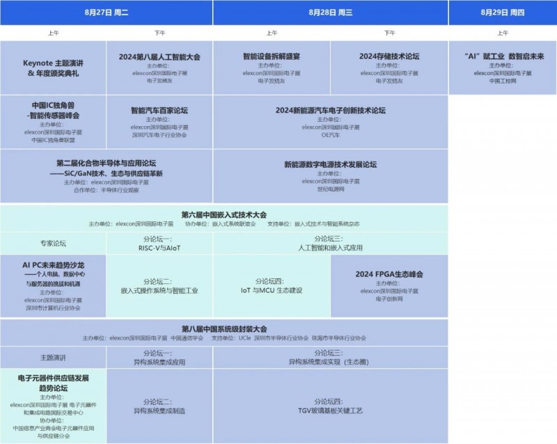 在elexcon2024深圳國(guó)際電子展會(huì)同期舉辦的20+專(zhuān)業(yè)論壇中,「第六屆中國(guó)嵌入式技術(shù)大會(huì)」、「AI PC 未來(lái)趨勢(shì)沙龍」、「2024 存儲(chǔ)技術(shù)論壇」、「第八屆人工智能大會(huì)」「2024 FPGA 生態(tài)峰會(huì)」等6場(chǎng)論壇與AI+存儲(chǔ)+嵌入式智能密切相關(guān)。