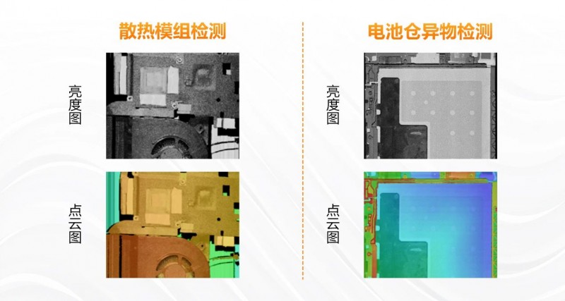 通過3D視覺檢測,能夠確保安裝前后狀態是否符合規格要求,如檢測電池倉的平整度及有無螺絲、泡棉等異物,在散熱模組安裝環節中檢測模組的平整度、螺絲浮高等,保證組裝質量。