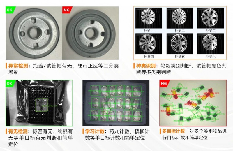 海康機器人全新推出的邊緣學習算法,覆蓋有無、正反、計數、分類等常規應用;在工具命名上按照場景化的命名方式,讓用戶面對各種需求時能精準找到自己需要的模塊,以更小樣本,更簡操作,打造視覺應用新范式。