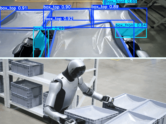 第一,自研視覺(jué)編碼器基座,構(gòu)建精準(zhǔn)環(huán)境感知。優(yōu)必選以ViT作為視覺(jué)編碼器原型,結(jié)合Co-DETR檢測(cè)頭,依托Object 365等開源數(shù)據(jù)在通用視覺(jué)任務(wù)上進(jìn)行預(yù)訓(xùn)練,并通過(guò)多階段模態(tài)對(duì)齊機(jī)制實(shí)現(xiàn)了視覺(jué)-語(yǔ)言模態(tài)的高效融合。最終,在優(yōu)必選機(jī)器人數(shù)據(jù)集上進(jìn)行微調(diào),顯著提升機(jī)器人在工業(yè)場(chǎng)景中對(duì)物體、障礙和操作上下文的識(shí)別能力,為復(fù)雜環(huán)境下穩(wěn)定可靠的多模態(tài)環(huán)境感知奠定了堅(jiān)實(shí)基礎(chǔ)。