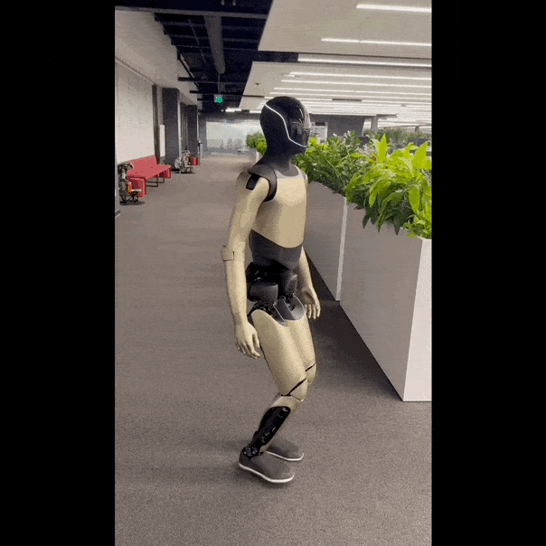 最讓人眼前一亮的,還是它的“走路方式”。視頻里,這臺金色 Optimus 的步態明顯更加自然,腳跟著地、步伐穩健,非常接近人類走路的方式。