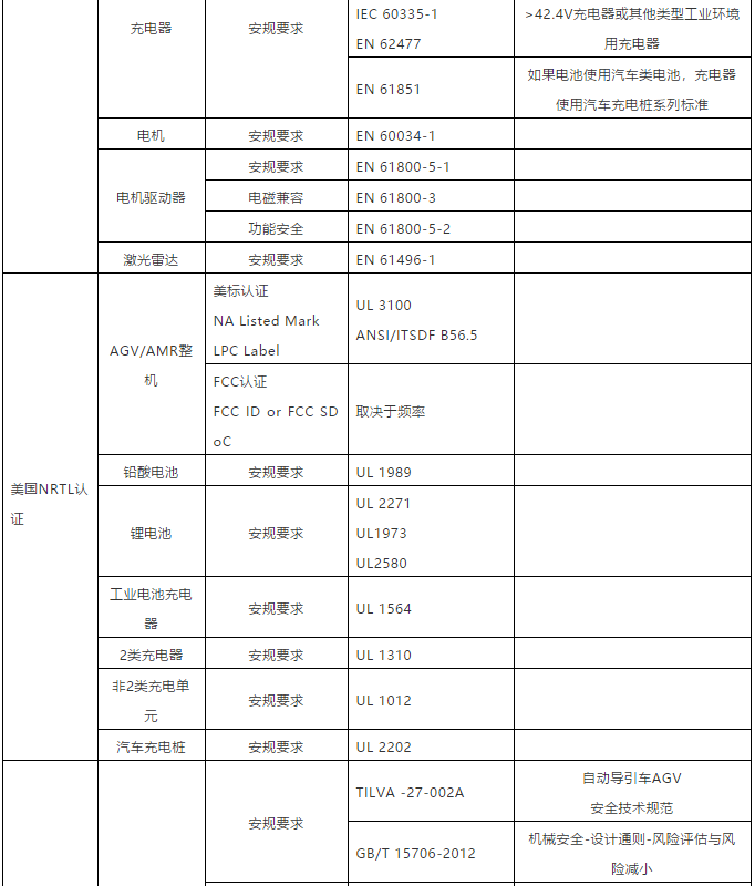 現有AGV/AMR及零部件法規標準一覽