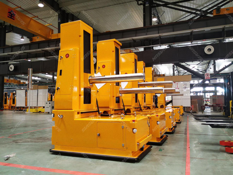而深度定制化服務(wù)使得新松可以根據(jù)客戶需求制作千變?nèi)f化的AGV形態(tài),寧德新能源的車間還有一些體積相對(duì)較大的多軸AGV,之所以稱之為多軸,是因?yàn)樗休d的設(shè)備有7組可動(dòng)機(jī)構(gòu),每組可動(dòng)機(jī)構(gòu)之間協(xié)調(diào)工作,來移載更復(fù)雜的貨物。在這臺(tái)AGV上,除了常規(guī)的各種傳感器之外,還附帶有高精度電子秤,可以時(shí)刻反映當(dāng)前貨物的重量,重心,實(shí)時(shí)調(diào)整托舉姿態(tài),防止大型貨物在移載過程中不會(huì)因?yàn)橹匦牟环€(wěn)導(dǎo)致事故,這么多控制單元同時(shí)協(xié)作,在AGV上也是第一次。 新松機(jī)器人新能源行業(yè)應(yīng)用涉及廣泛,除電池生產(chǎn)線外,新松也為新能源電動(dòng)汽車打造輕量級(jí)裝載型AGV。據(jù)悉,疫情期間,新松還拿到了美國(guó)新能源汽車上海工廠近百臺(tái)總裝AGV訂單。