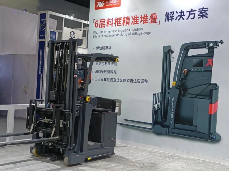 永恒力無人駕駛運輸系統堆垛車,提升高度3.2米,額定荷載1000KG。