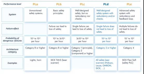 EN ISO 13849-2015標準定義了不同安全部件所需的性能級別(PLa to PLe)。行業標準要求AGV制造商達到的是PLd級別的安全規劃。具體來說,這種安全水平確保了車輛在發生單一故障時仍能繼續運行,例如使用兩個冗余通道。在斷層同步堆積的情況下,仍然可能發生安全功能的喪失,盡管這種可能性很小。