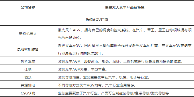表:中國市場40+叉車AGV企業(yè)(排名不分先后,企業(yè)分類以其主營業(yè)務(wù)為依據(jù))