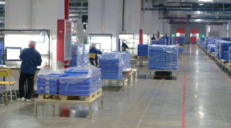 目前已部署潛伏和叉取系列機器人,共計近300臺AMR運行在智能工廠中,覆蓋3個樓層,涉及原材料倉儲、車間產線配送、成品倉儲。