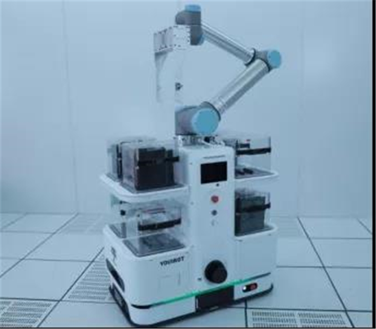 某半導體企業(yè)從2015年開始陸續(xù)應用了沈陽新松機器人自動化股份有限公司的復合移動機器人,復合移動機器人分別應用于工廠的加工和物流區(qū)域,主要用于半導體材料的搬運,通過機器手臂將物料自動抓取到各加工設備中,來實現(xiàn)物料的自動轉運。移動機器人本體及協(xié)作手臂均由新松機器人公司提供。