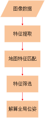 紋理導(dǎo)航算法首先對相機采集的圖像進行視覺特征提取,這里的視覺特征主要指點、線及結(jié)構(gòu)特征等;然后,算法會將提取得到的特征與導(dǎo)航地圖庫中的特征進行匹配、篩選,得到地圖庫中對應(yīng)的匹配特征,根據(jù)兩對特征的相互映射、轉(zhuǎn)換關(guān)系解算實時全局位姿,完成AGV設(shè)備的導(dǎo)航定位。