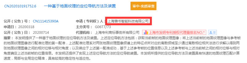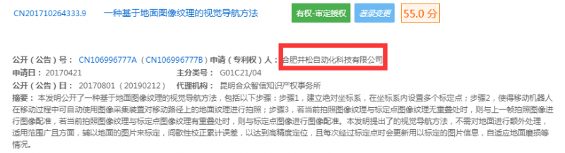 新戰(zhàn)略移動機器人產(chǎn)業(yè)研究所通過專利檢索發(fā)現(xiàn),目前該導(dǎo)航方式為發(fā)明專利,主要專利人為合肥井松自動化科技有限公司與上海懶書智能科技有限公司所有,發(fā)明人均為劉詩聰。